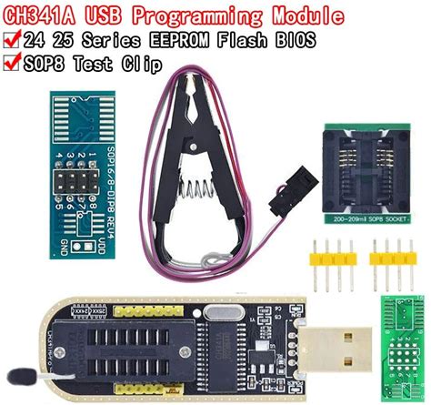 CH341B 24 25 Series EEPROM Flash BIOS CH341 USB Programmer Module + SOIC8 SOP8 Test Clip For EEPROM