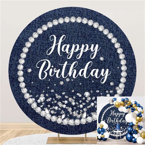 TTQYFNM 7x7ft Denim And Diamond Birthday Round Backdrop Cover Polyester Sparkling Diamonds Crystal Happy Birthday Photography Background For Woman